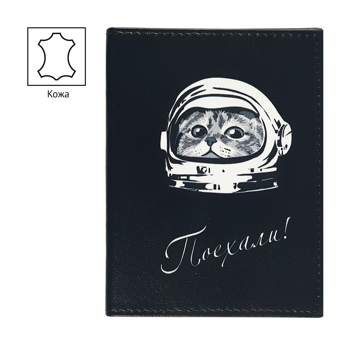 Обложка для автодокументов OfficeSpace "Поехали", натур. кожа