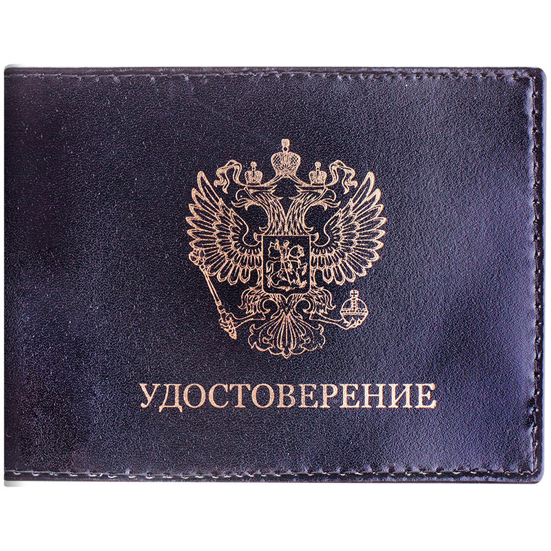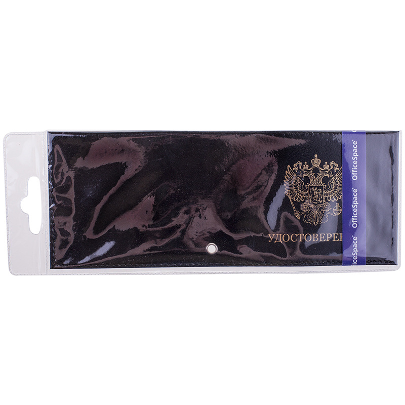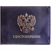 Обложка для удостоверения OfficeSpace черная, кожа, тиснение "Герб"