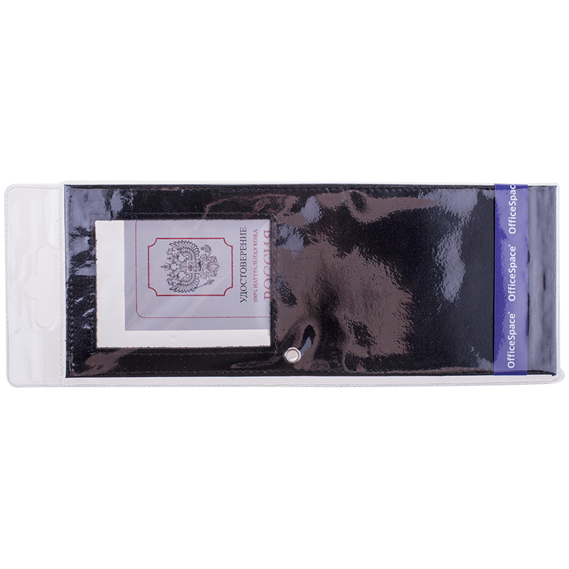 Обложка для удостоверения с окном OfficeSpace черная, кожа