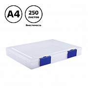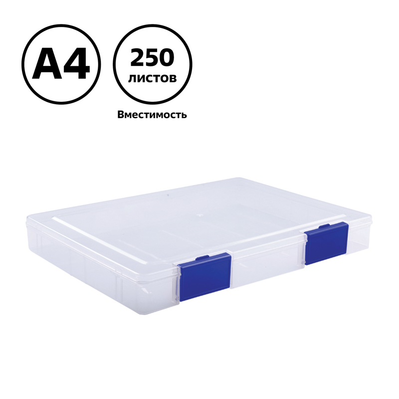Папка для документов СТАММ А4, 235*310*40мм, пластик., прозрачная, синие защелки