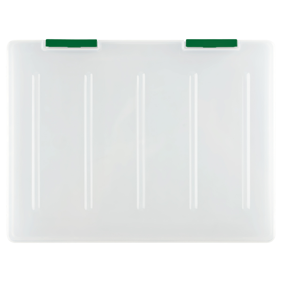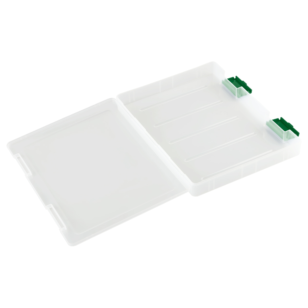 Папка для документов СТАММ А4, 235*310*40мм, пластик., прозрачная, зеленые защелки