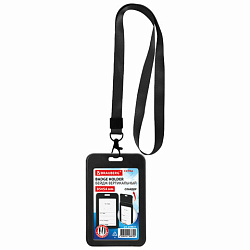Бейдж вертикальный (85х54 мм), лента 45 см с карабином, СЛАЙДЕР, черный, BRAUBERG EXTRA, 238831
