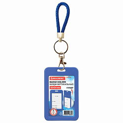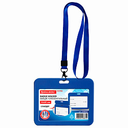 Бейдж горизонтальный (54х85 мм), лента 45 см с карабином, СЛАЙДЕР, синий, BRAUBERG EXTRA, 238833