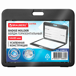 Бейдж горизонтальный (54х85 мм), ДВУСТОРОННИЙ, cиний, ЗАЩИТА ОТ ВЛАГИ И ПЫЛИ, BRAUBERG EXTRA, 238811
