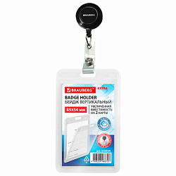 Бейдж вертикальный (85х54 мм) на 2 карты, с рулеткой, ЗАЩИТА ОТ ВЛАГИ И ПЫЛИ, BRAUBERG EXTRA, 238824