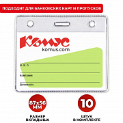 Бейдж Комус горизонтальный, изготовлен из прозрачного пластика. Размер бейджа — 93×78 мм. Подходит для закрепления на держателе с рулеткой. Предназначен для ношения именных карточек, пропусков. Поставляется в упаковке в количестве 10 штук.
