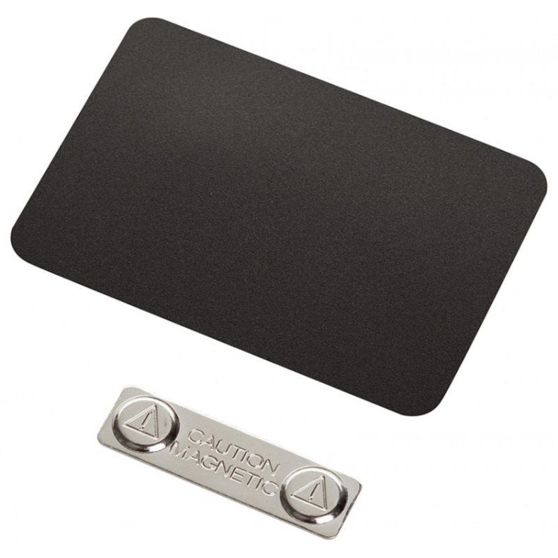 Меловой бейдж Attache для письма меловым маркером или мягким мелом. Изготовлен из черного полипропилена толщиной 1.2 мм. В изделии в качестве крепежного элемента используется магнит. Размер бейджа — 85×55 мм. Углы закруглены.