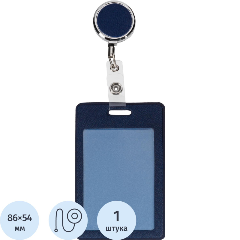 Бейдж ВЕРТИКАЛЬНЫЙ С ДЕРЖАТЕЛЕМ-РУЛЕТКОЙ, синий