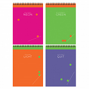 Состоит из 80 листов размером 145*205 мм офсетной бумаги белого цвета плотностью 60 г/м2. Линовка – клетка. Обложка – мелованный картон. Гребень позволяет легко вынимать листы при необходимости.