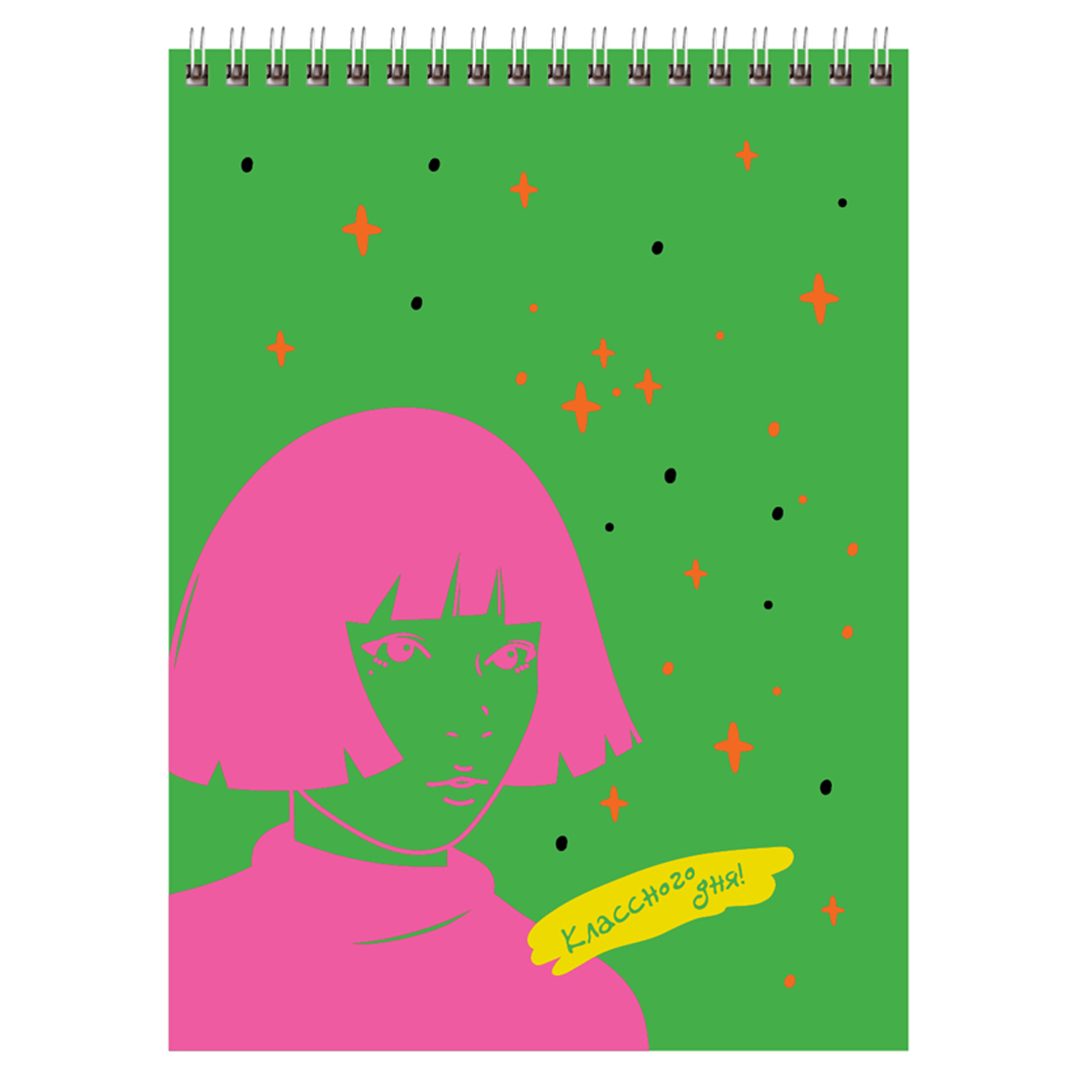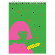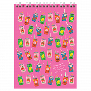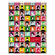 Состоит из 80 листов размером 145*205 мм офсетной бумаги белого цвета плотностью 60 г/м2. Линовка – клетка. Обложка – мелованный картон. Гребень позволяет легко вынимать листы при необходимости.