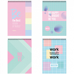 Блокнот размером 102*165 мм состоит из 32 листов офсетной бумаги белого цвета плотностью 60 г/м2. Линовка – клетка. Вид крепления – скрепка. Мягкая обложка – мелованный картон. В упаковке в термоусадочную плёнку ассорти ярких забавных дизайнов, которые с лёгкостью поднимут настроение.