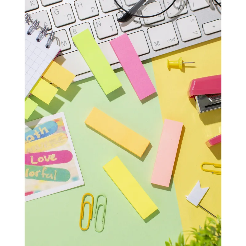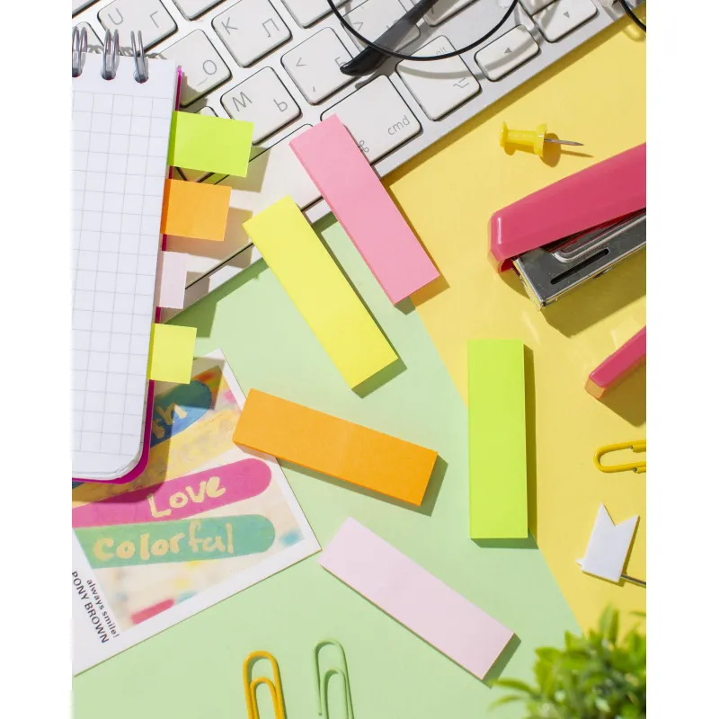 Клейкие закладки легко удаляются, не оставляя следов и не повреждая бумагу.