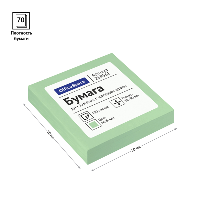 Самоклеящийся блок OfficeSpace 50*50мм, 100л., зеленый