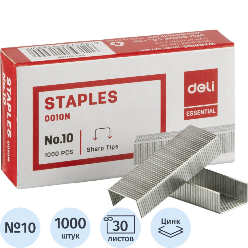 Скобы для степлера №10 Deli E0010N оцинкованные, 1000 шт./уп