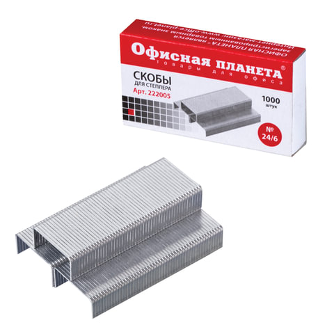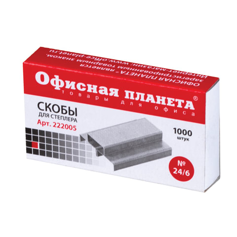 Скобы для степлера №24/6, 1000 штук, ОФИСНАЯ ПЛАНЕТА, до 30 листов, 222005