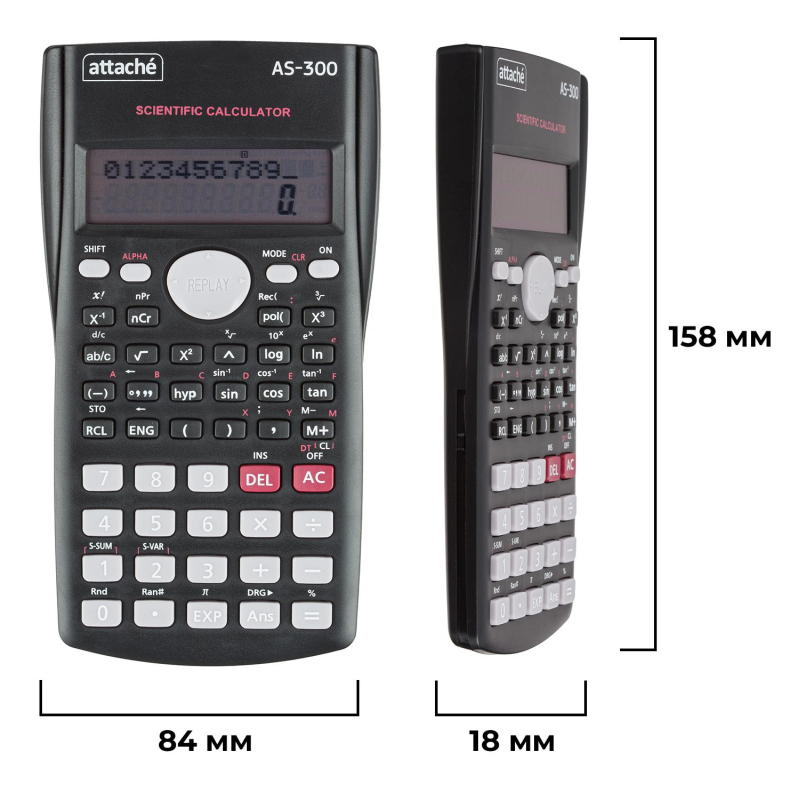 Калькулятор Attache научный AS-300 с 8-разрядным ЖК-дисплеем. Эргономичная, красивая и компактная форма панели и максимальный комфорт в использовании. Корпус и кнопки изготовлены в черном цвете из качественного пластика. Количество функций: 240. Питание калькулятора осуществляется с помощью двух круглых батареек типа AG13 (входят в комплект и уже установлены внутри калькулятора). Размер калькулятора: 158x84x18 мм. Материал: пластик. Число строк дисплея: 2. Цвет: черный. Вес: 0.11 кг. Гарантийный срок: 18 месяцев.