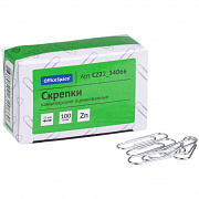 Скрепки 22мм, OfficeSpace, 100шт., оцинкованные, карт. упаковка