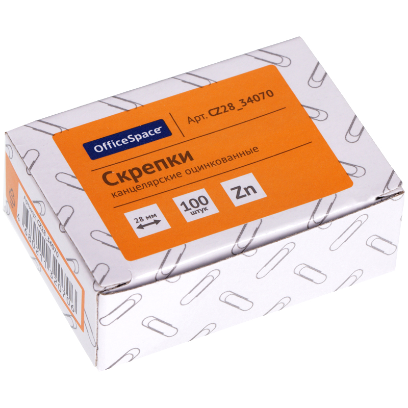Скрепки 28мм, OfficeSpace, 100шт., оцинкованные, карт. упаковка