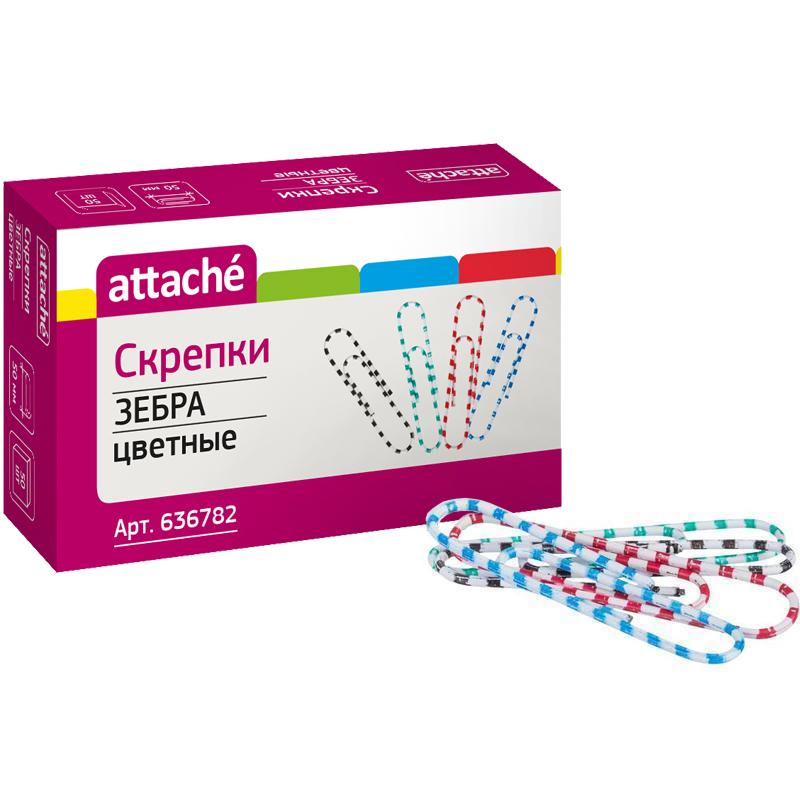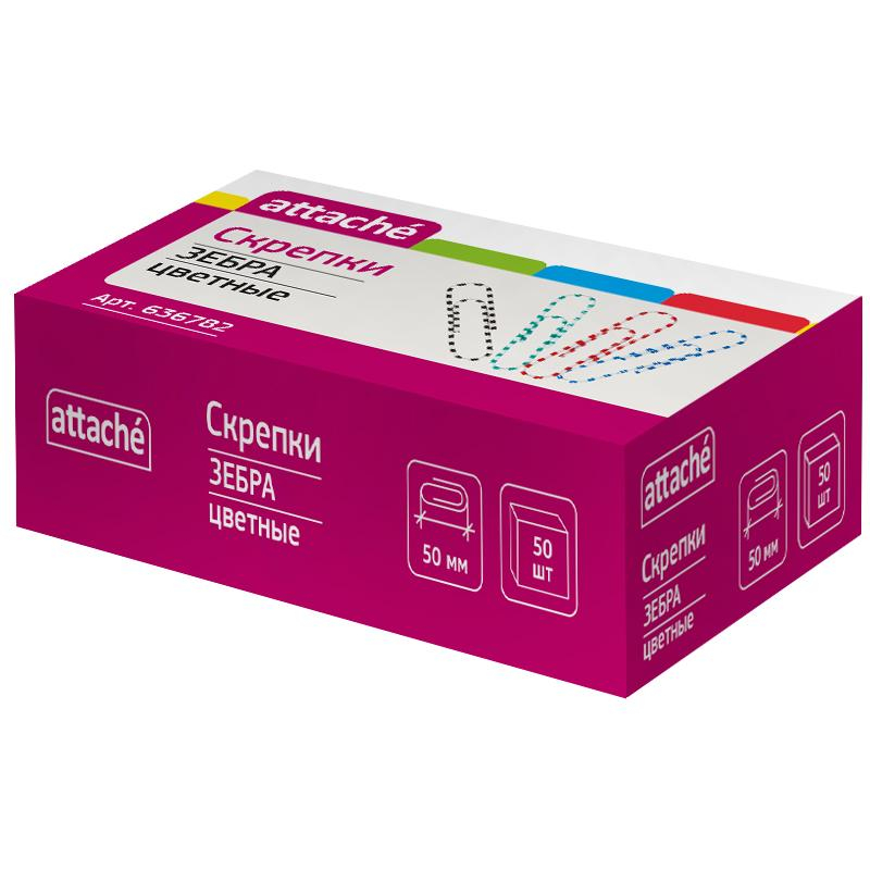 Скрепки Зебра Attache, полимер, 50 мм., 50 шт.в карт/уп