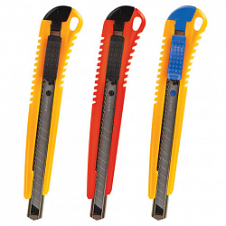 Нож канцелярский 9 мм BRAUBERG "Classic", фиксатор, корпус ассорти, упаковка с европодвесом, 230914