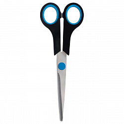 Ножницы OfficeSpace 21,5см, эргономичные ручки, черные с синими вставками, ПВХ чехол с европодвесом