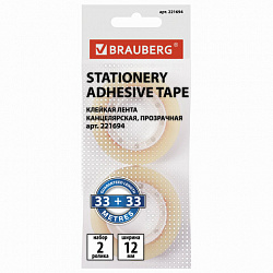 Клейкие ленты 12 мм х 33 м канцелярские BRAUBERG, комплект 12 шт., прозр., гарант. длина, 223123