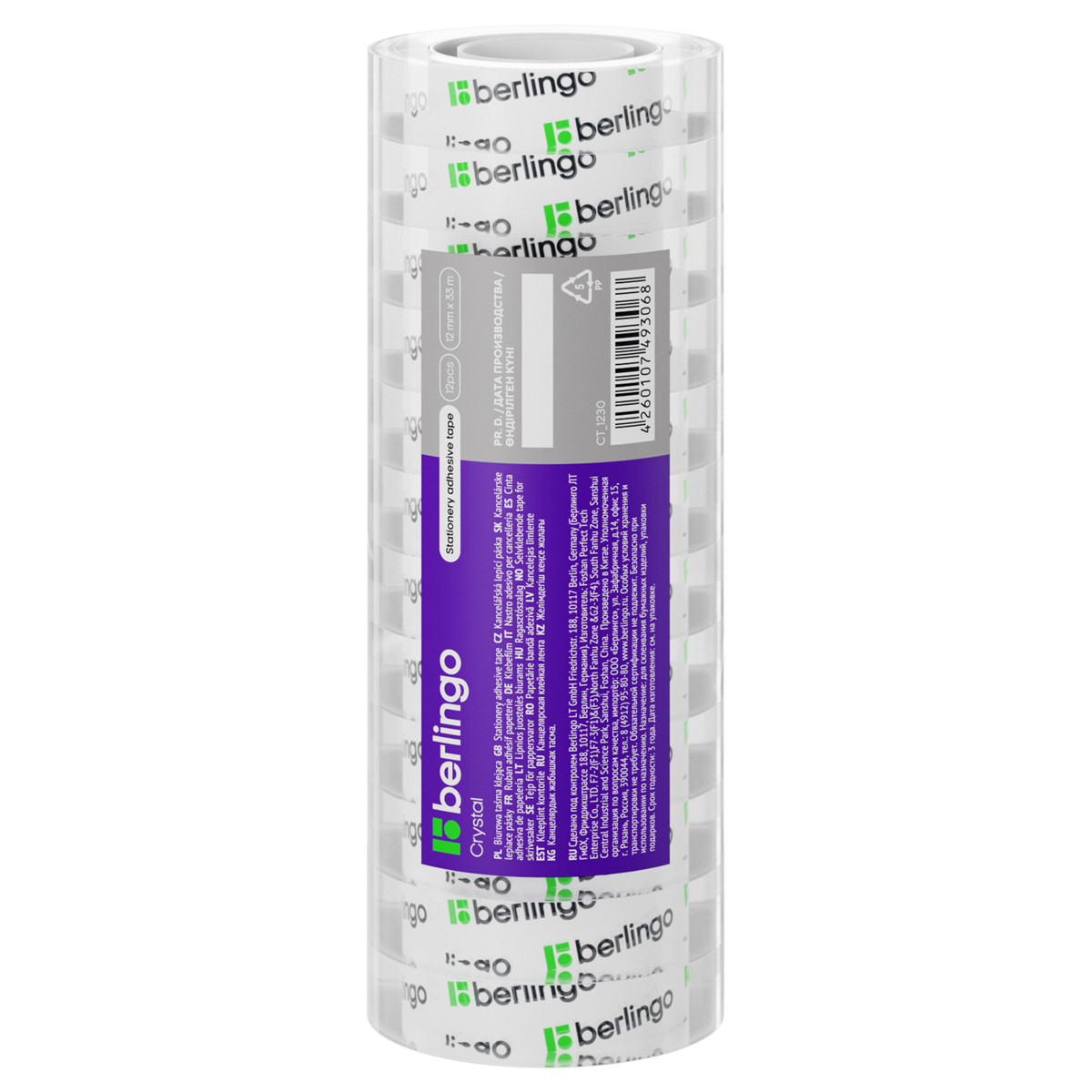 Клейкая лента 12мм*33м, Berlingo, кристально-прозрачная