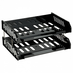 Лоток для бумаг горизонтальный СТАММ "Сити", набор 2шт., на мет. стержнях, широкая загрузка, черный