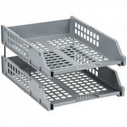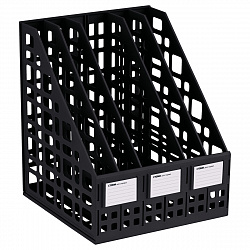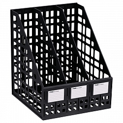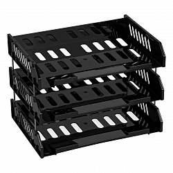 Лоток для бумаг горизонтальный СТАММ "Сити", набор 3шт., на мет. стержнях, широкая загрузка, черный