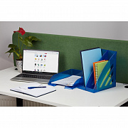 Горизонтальный лоток для бумаг Комус коллекции Русская серия предназначен для хранения документов и печатной продукции формата А4. Этот лоток освежит рабочий стол благодаря дизайну и яркой палитре. Возможна установка лотков друг на друга и со смещением (штабелирование). Изготовлен из полистирола. Цвет: синий. Размеры (ВхГхШ): 65х320х245 мм. Вес: 0.289 кг.. В комплекте нет этикетки для маркировки.