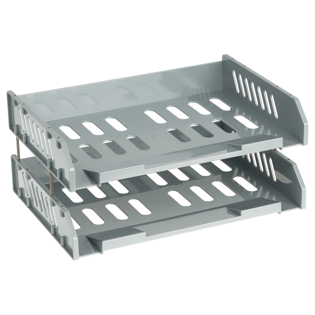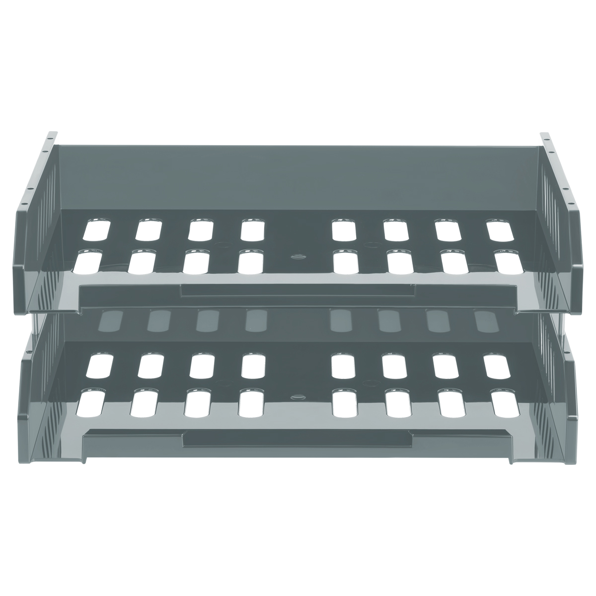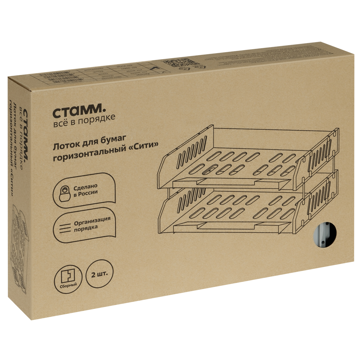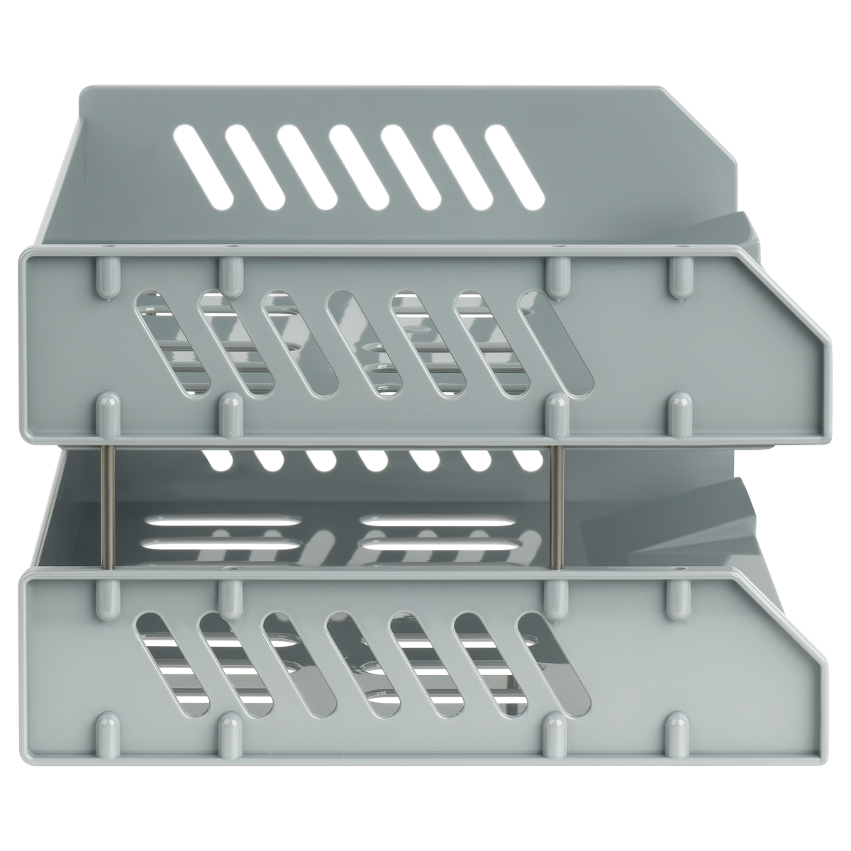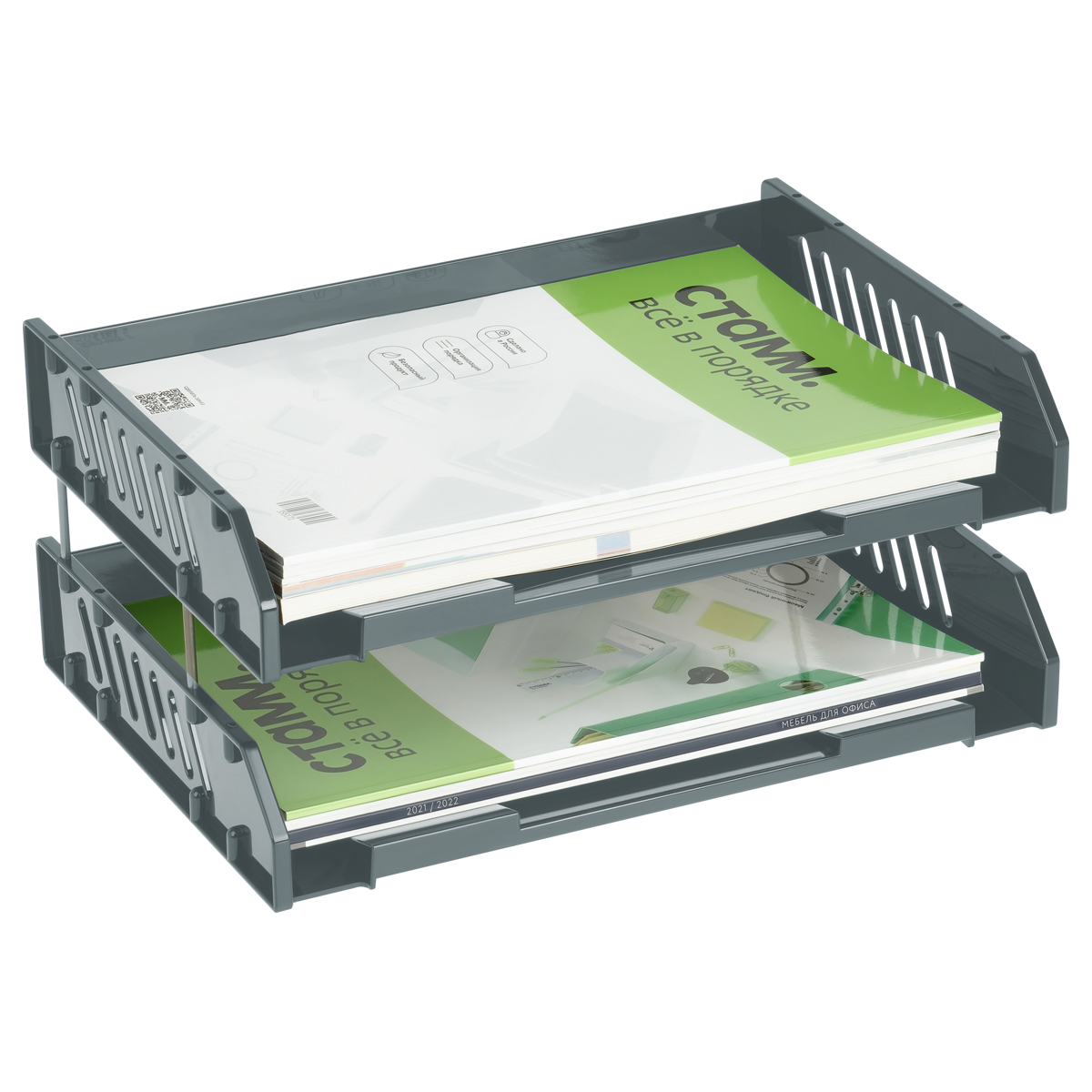 Лоток для бумаг горизонтальный СТАММ "Сити", набор 2шт., на мет. стержнях, широкая загрузка, серый