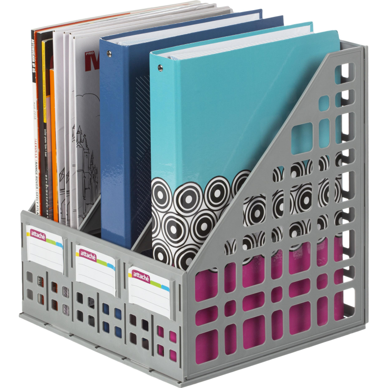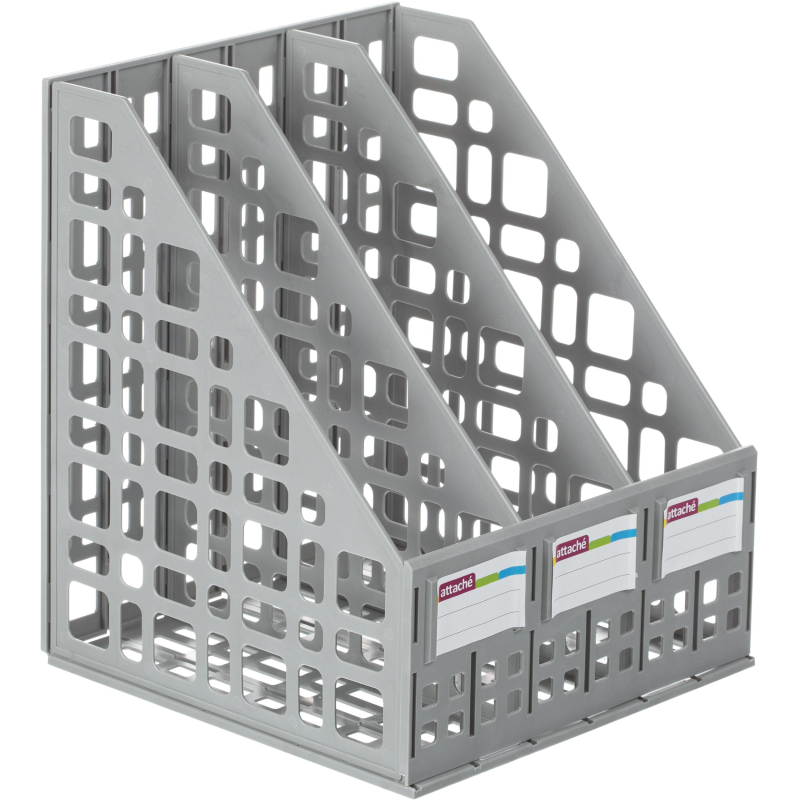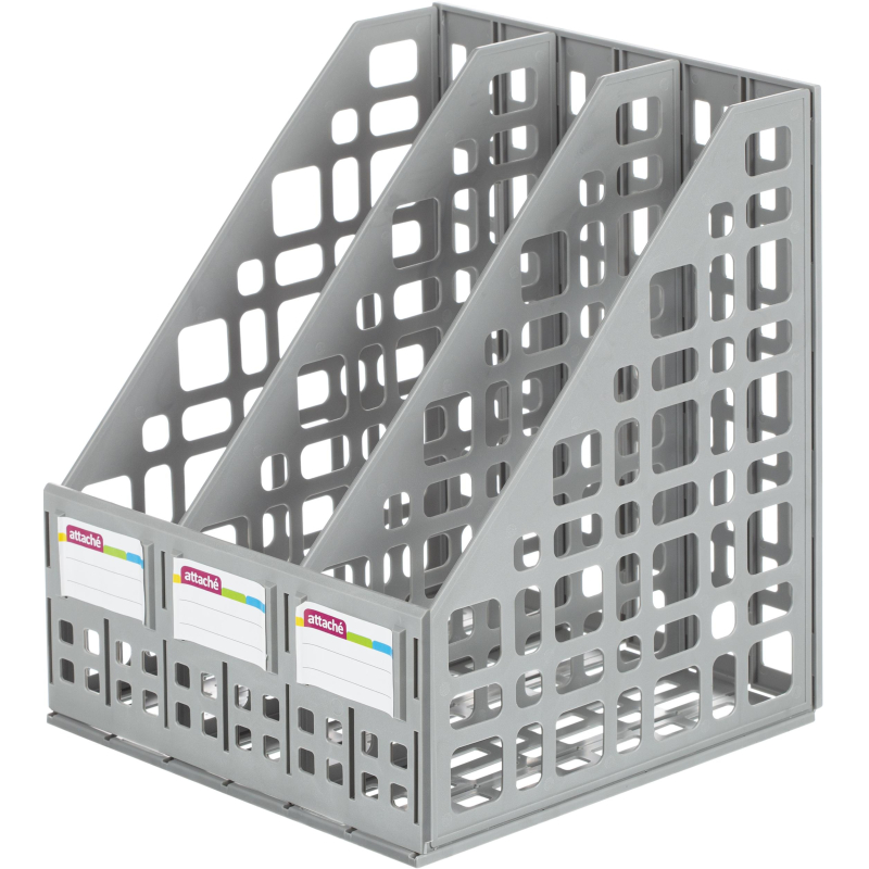 Вертикальный накопитель Attache имеет 3 отделения. Легкий и прочный даже при загрузке документами. Удобен при транспортировке и хранении. Накопитель имеет сборно-разборную конструкцию. Сетчатая поверхность. Цвет серый. Ширина основания 240 мм. В комплекте есть этикетки для маркировки.