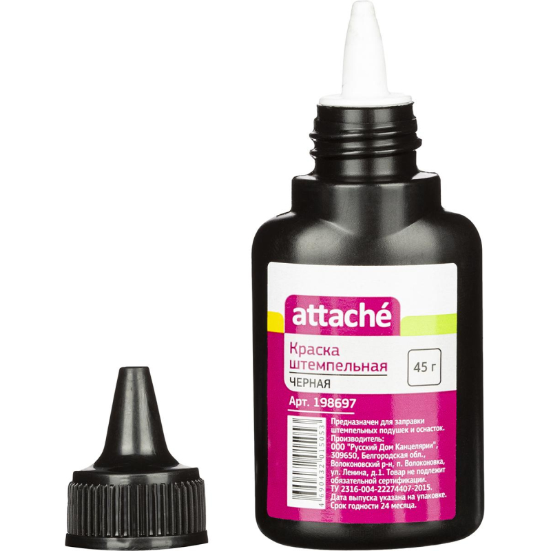 Краска штемпельная Attache черная на водной основе. Объем флакона 45 г. Флакон снабжен дозатором, обеспечивающим равномерное нанесение краски на подушку. Назначение: для бумаги.Похожие товары