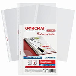 Папки-файлы перфорированные А4 ОФИСМАГ ЭКСТРА, КОМПЛЕКТ 50 шт., гладкие, ПЛОТНЫЕ, 50 мкм, 272682