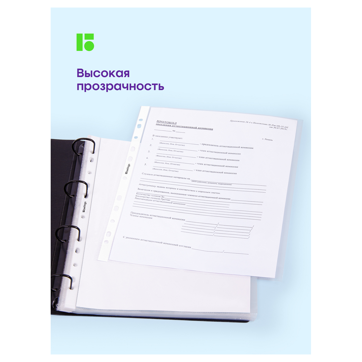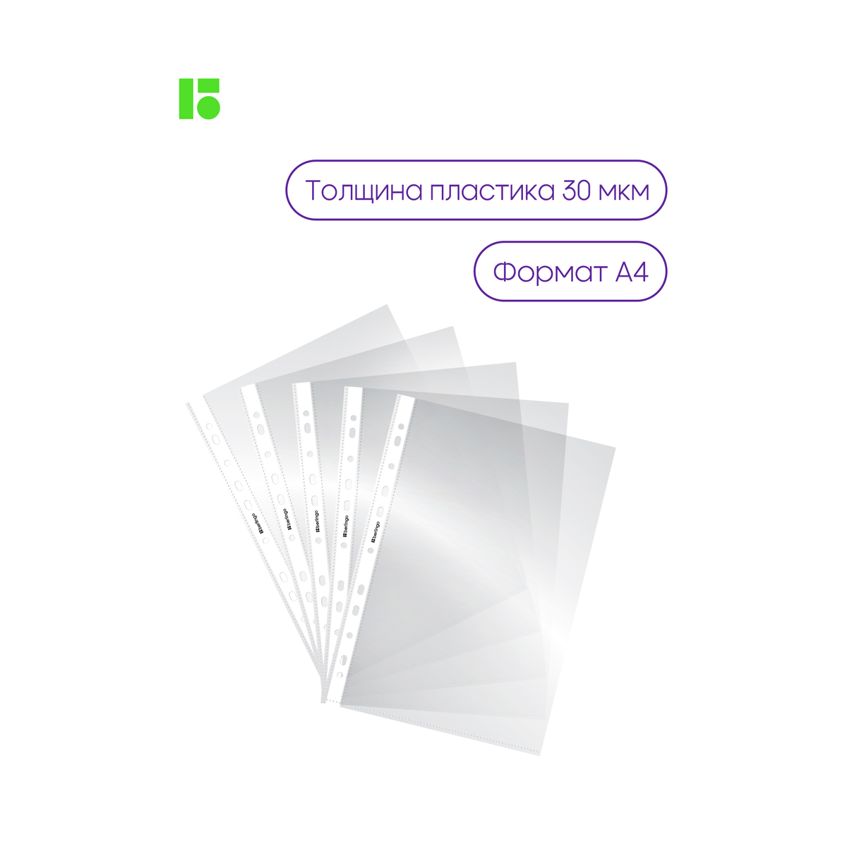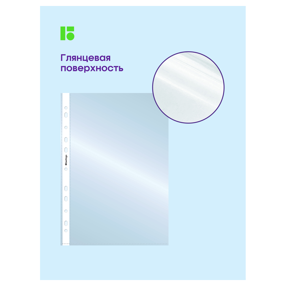 Папка-вкладыш с перфорацией Berlingo, А4, 30мкм, глянцевая