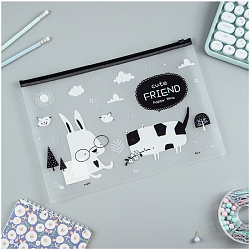 Папка-конверт на zip-молнии OfficeSpace А4, полипропилен, 150мкм, прозрачная, карман, молния красная