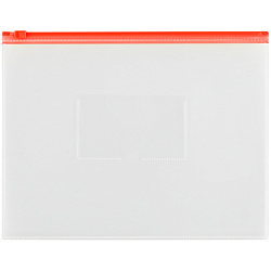 Папка-конверт на zip-молнии OfficeSpace А4, полипропилен, 150мкм, прозрачная, карман, молния красная