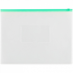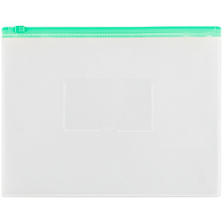 Папка-конверт на zip-молнии OfficeSpace А4, полипропилен, 150мкм, прозрачная, карман, молния зеленая