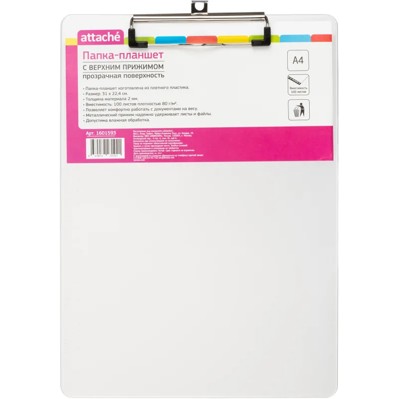Папка-планшет Attache А4, жесткий пластик 2мм, белый