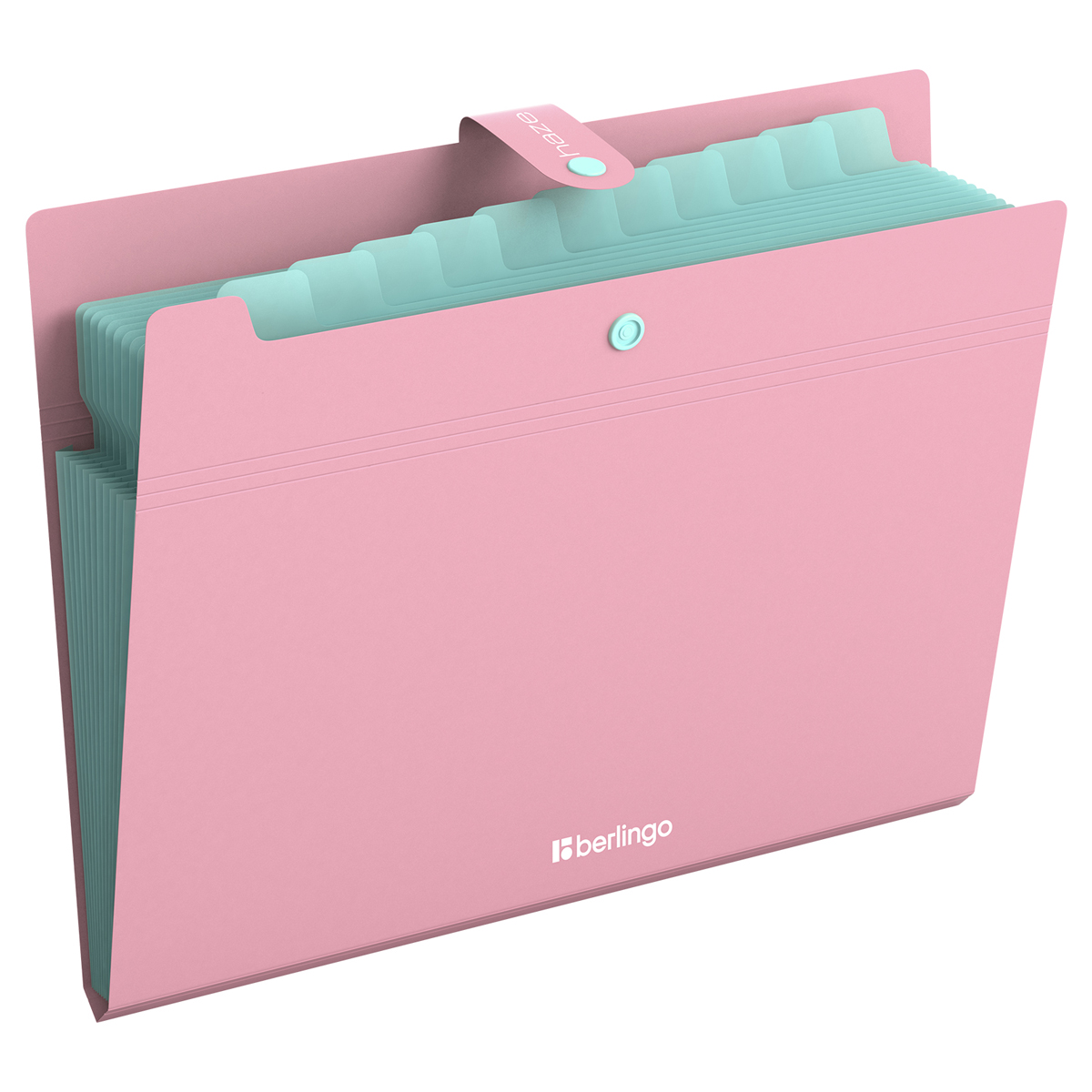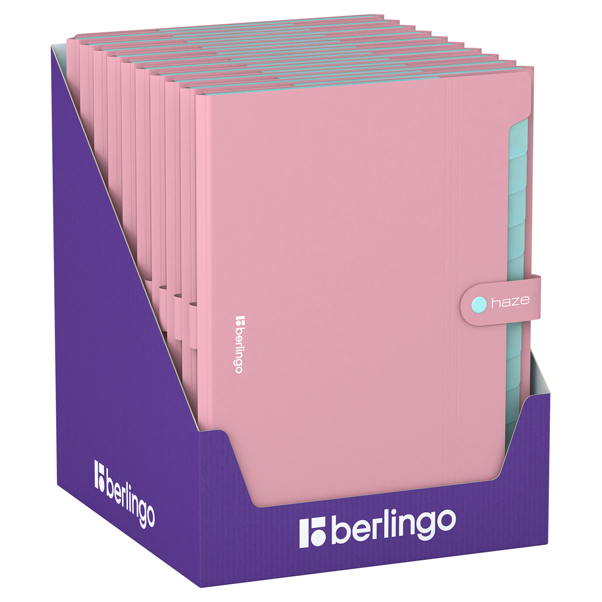 Папка 12 отделений Berlingo "Haze", А4, 600мкм, на кнопке, розовая