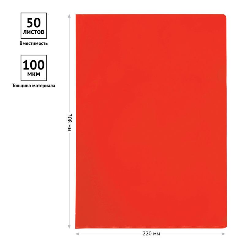 Папка-уголок OfficeSpace А4, 100мкм, пластик, прозрачная красная
