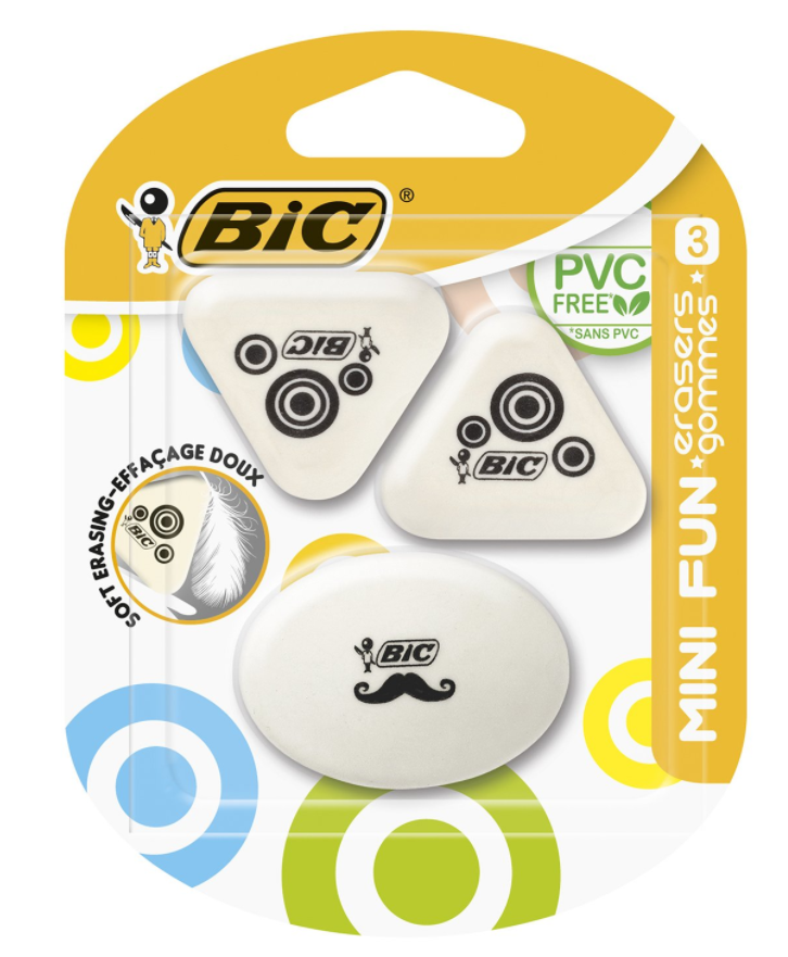 Набор ластиков разной формы BIC «Mini Fun» ластики прекрасно подходят для работы с разными карандашами, в том числе с цветными.