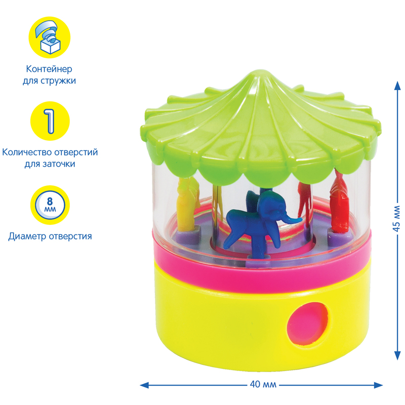 Точилка пластиковая Мульти-Пульти "Карусель" 1 отверстие, контейнер