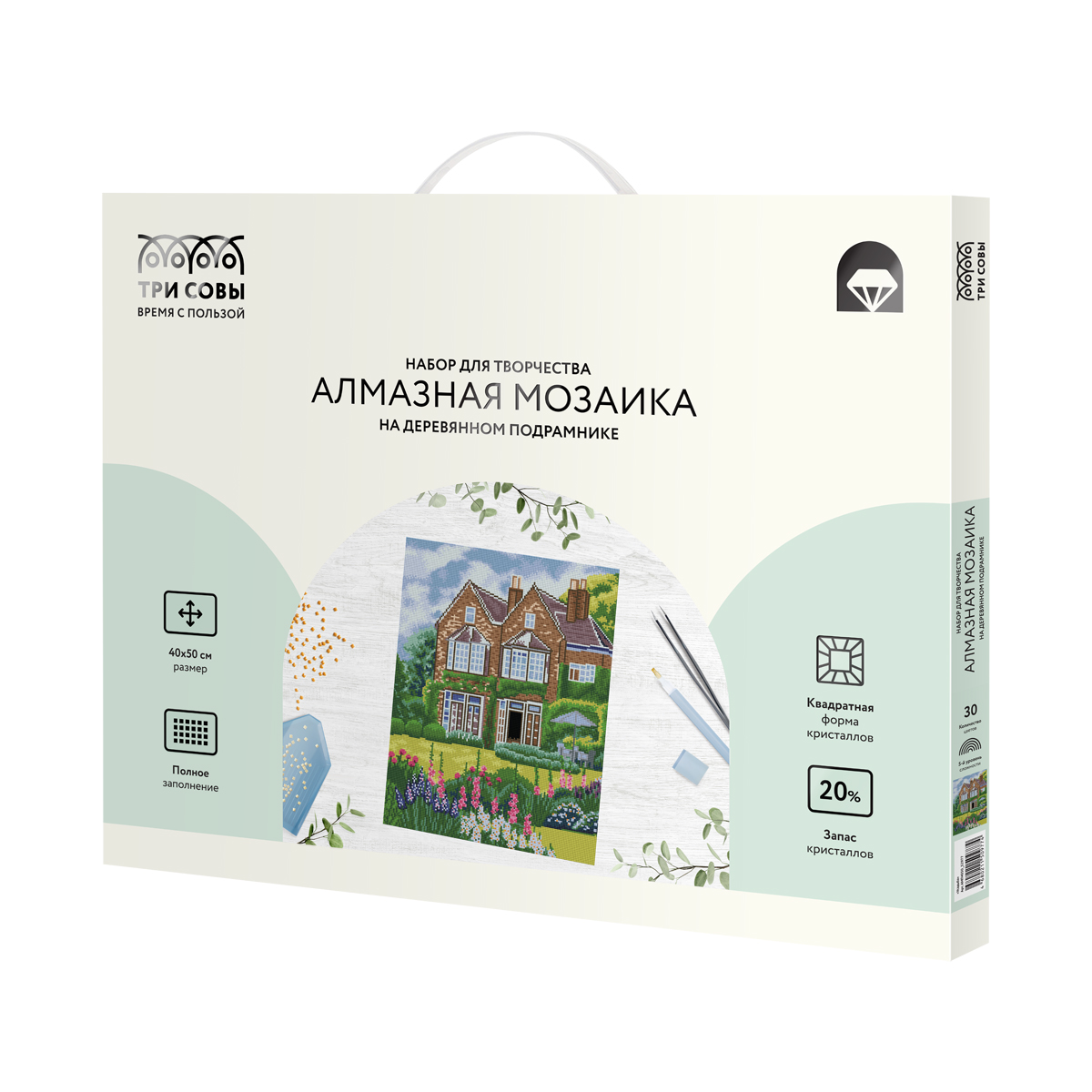 Алмазная мозаика ТРИ СОВЫ "Усадьба", 40*50см, холст на деревянном подрамнике, картонная коробка с пластиковой ручкой
