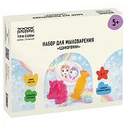 Состав набора: формочки для мыла из полиэтилена, мыльная основа, акварельная картинка на водорастворимой бумаге, ароматизатор, красители пищевые, перчатки целлофановые, палочка деревянная, пластиковый контейнер.