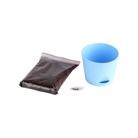 Состав набора: керамзит, крышка-поддон, пластиковый горшок (0,5 л), плодородный грунт (PH=6-7), семена