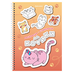 Стикербук ПРОСТО НАКЛЕЙ А6 16 листов 96 цветных стикеров, на гребне, BRAUBERG, Коты мемы, 666050