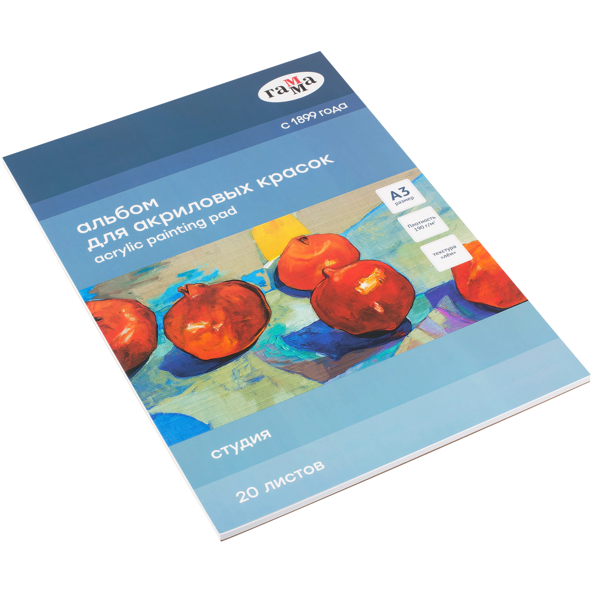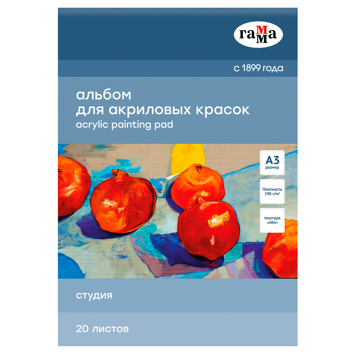 Альбом для акрила, 20л., А3, на склейке Гамма "Студия", 190г/м2, текстура "лен"