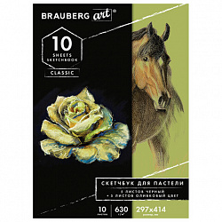 Альбом для пастели, картон ЧЕРНЫЙ+ОЛИВКОВЫЙ 630 г/м2, 297x414 мм, 5+5 листов, BRAUBERG ART, 105924
