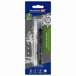 Маркеры акриловые для рисования и хобби, 2 цвета ЧЕРНЫЙ/БЕЛЫЙ, линия 0,7-1 мм, BRAUBERG ART, 152527
